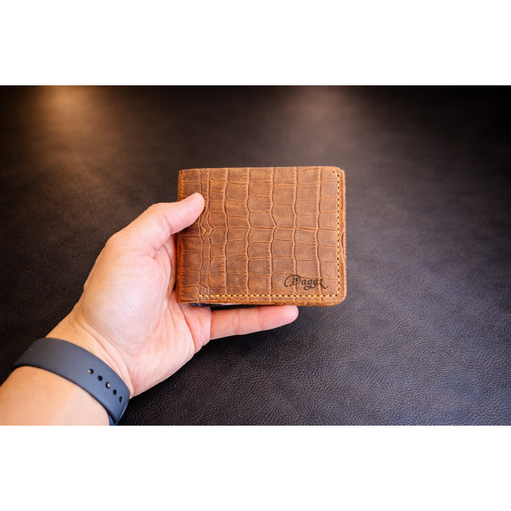 Мужской кожаный кошелек коричневый Crazy Horse под крокодила
