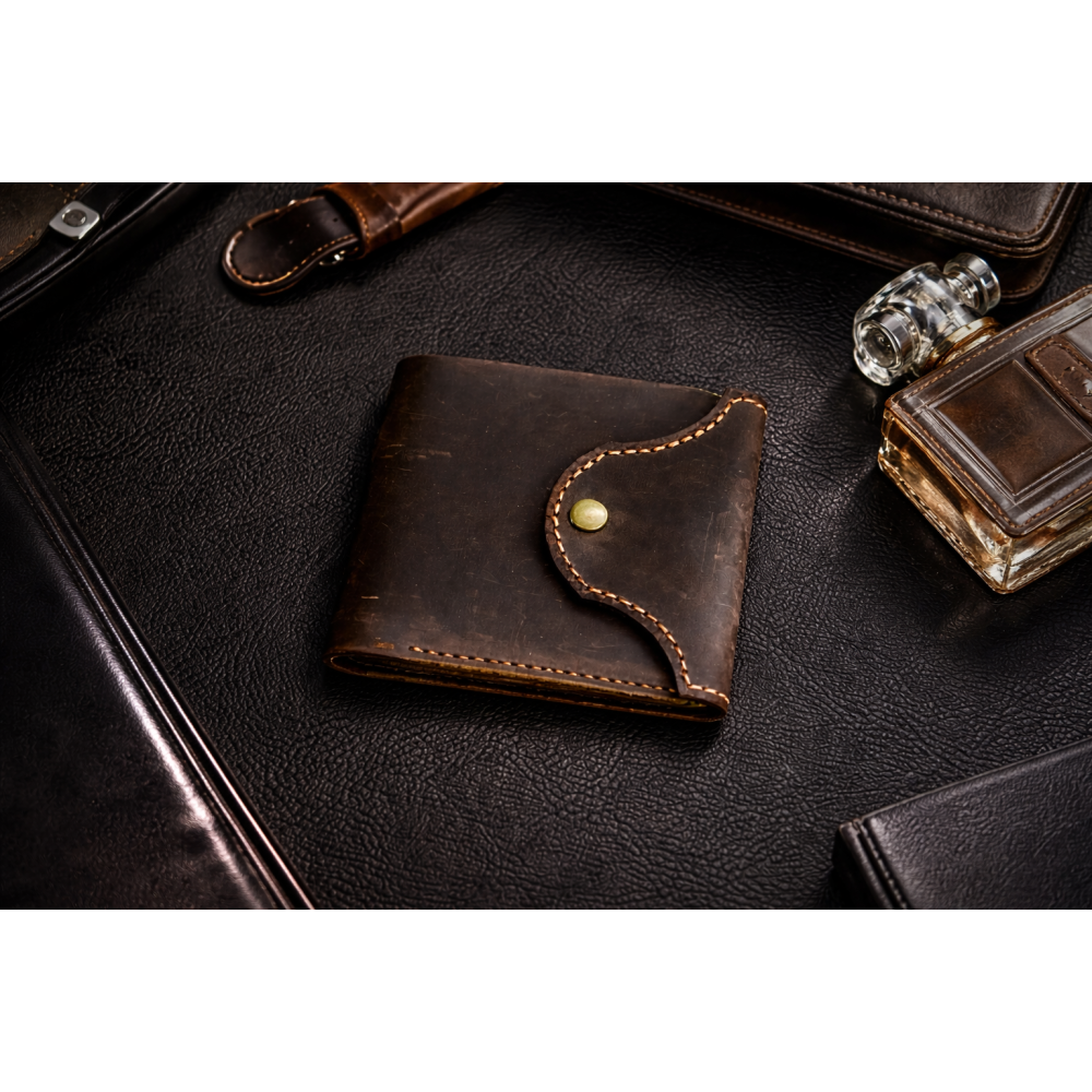 Мужской кожаный кошелек Texas — стильный и практичный аксессуар для хранения денег и банковских карт. Изготовленный вручную из натуральной кожи Crazy Horse цвета орех, он сочетает долговечность, минимализм и удобство использования.